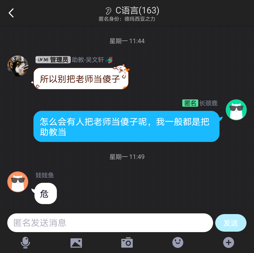 题外话,课程群可以匿名,氛围和和谐(雾),还可以对白老师和助教小哥哥们犯病/色色,有不懂的问题抛群里,都会有其他同学或者助教和老师帮你解答。