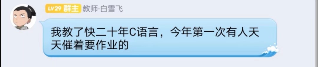 总结:白老师的课堂很有趣,群里也洋溢着欢快的气息,如果你是想学好C语言这门课程和获得一定的编程基础,十分推荐选白老师的课程!