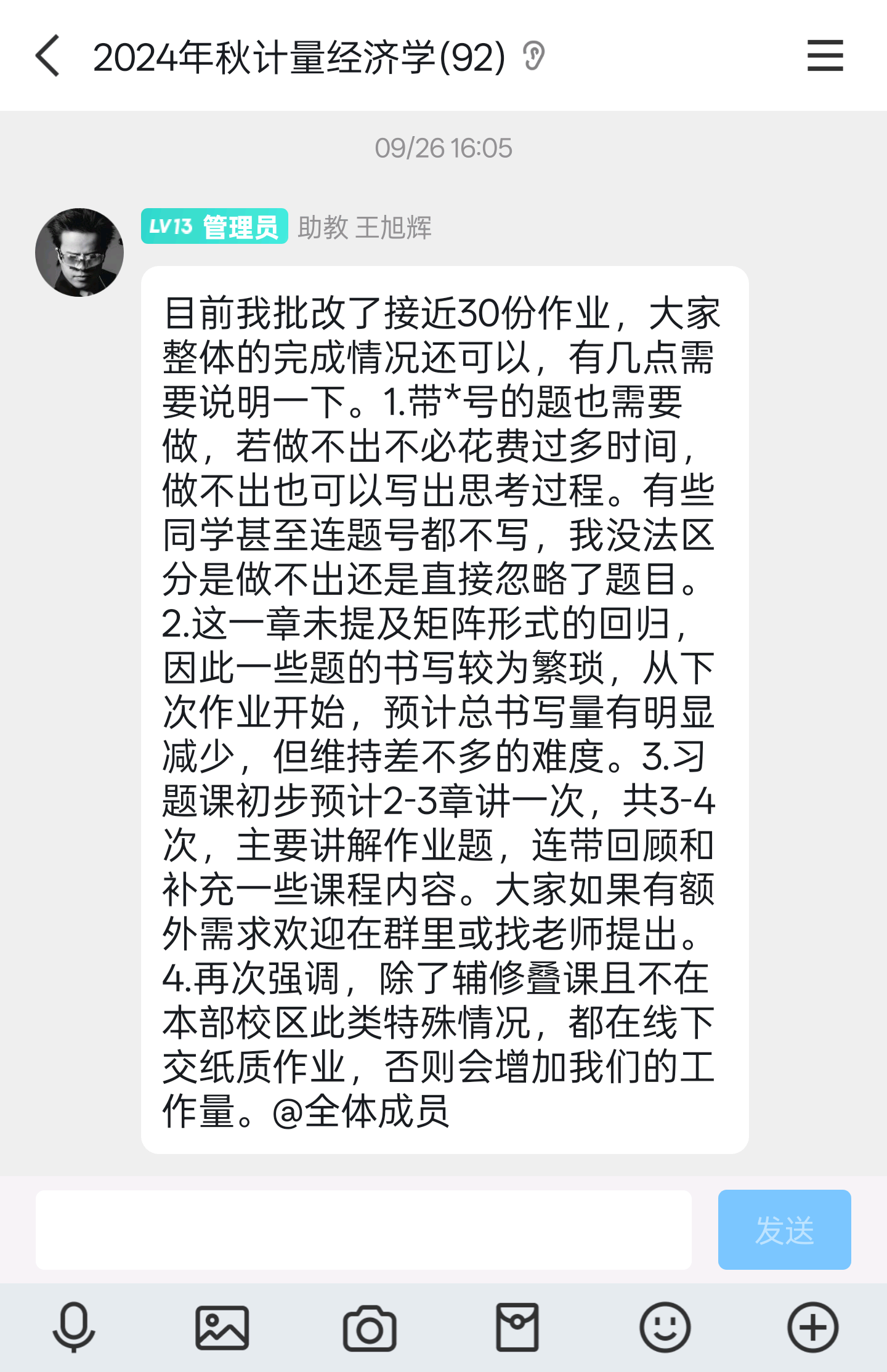 还没有开始写新的作业,第三四章的。还挺无奈的,我们不是不想学,不想好好完成作业,而是真的能力有限。助教不懂得换位思考吗,或许在您看来非常简单,不应该写不出来的推到证明题,我们就是无法靠自己写出来。你现在已经站在计量经济学领域一定的高度了,而我们只是刚刚学起。就像高中会觉得小学数学题难????我能理解助教想让我们深层次地去学习去理解,但是给出那么多超出我们能力范围地、那么数学地题目难道就有用了吗?而且,我们并不是只需要学这一门课,即使这学期专业课少,我们也有其他的事情需要做。某种意义上,我觉得阻碍了我对这门课程的学习,因为作业过于难,甚至想糊弄借助ai都要糊弄很久,写的我连老师上课都已经不想听了。您想让我们更好理解,但和老师上课的风格好像有点割裂了。。就挺委屈的,真的是能力不够,却要被扣上怠惰、不好好写、不好好学的帽子。。。。。我承认助教的用心,但我觉得,达不到你想要的效果。真的有点拔苗助长用力过猛的感觉,所以不要再高估我们了,不要再浪费你的精力和我们的精力了好吗求求了。。。。。。。。。。。。。。。。。。如果你不信的话,可以联系金融班主任,问她要前几名同学名单,聊一聊,看看代表主修最高水平的同学们,是什么样的状态,对作业是什么样的看法,但据我所知,前几名的同学,也在吐槽。那请问你还指望后面的同学从您的作业中获益什么啊。。我觉得您真的太高估我们本科生了。