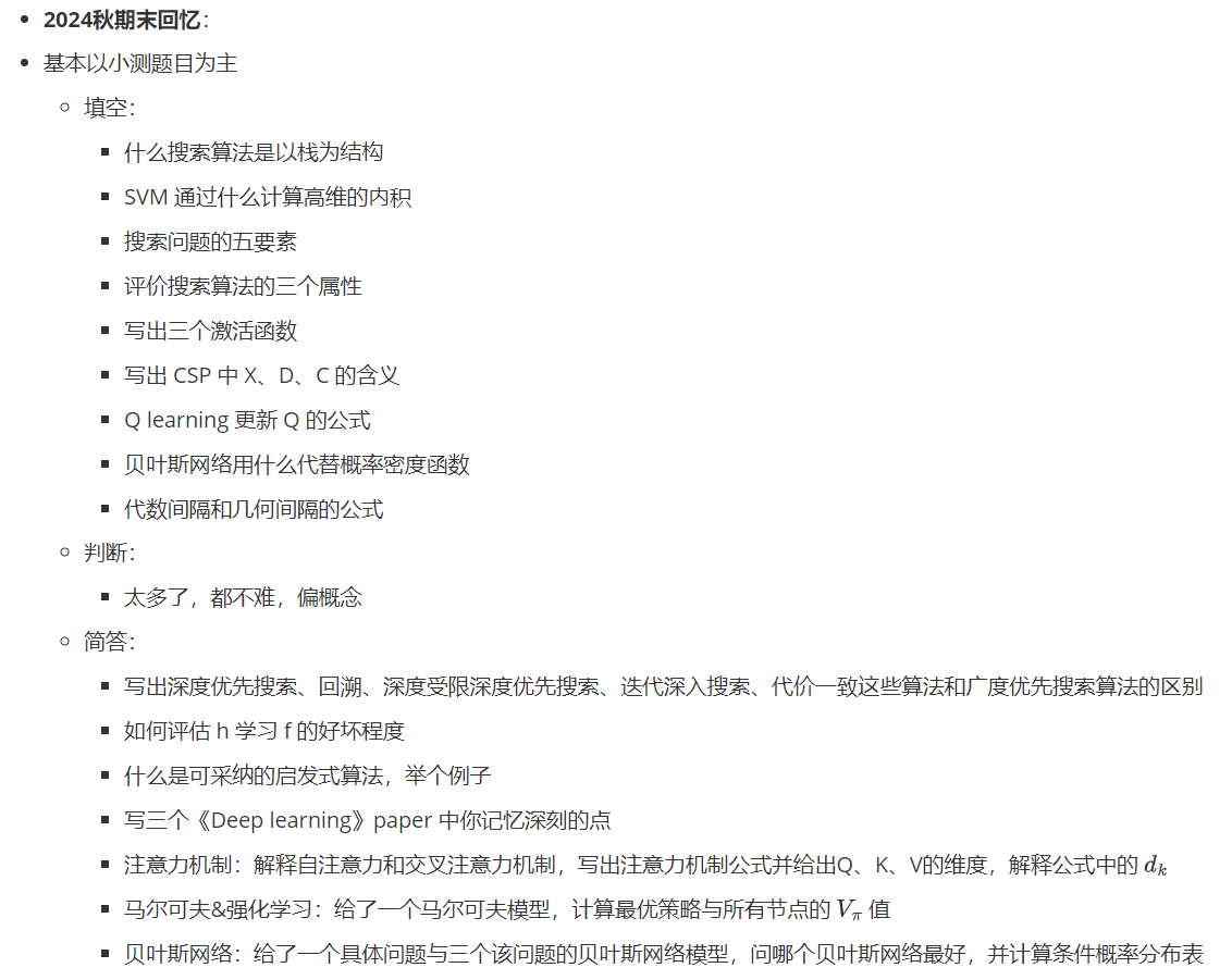 分享一下我回忆的2024秋的期末题和考前简单写的笔记(参考了往年的笔记)